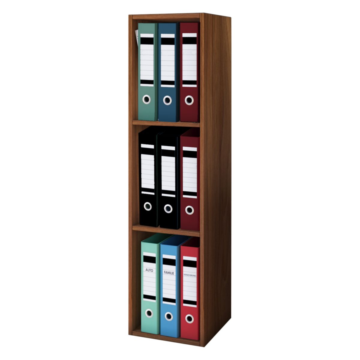 VCM Büro-Regal „Offas Kern-Nussbaum". Für Sammelschätze Aktenordner, Büromaterial, Bücher, Schallplatten, CDs oder DVDs. Holzstrukur-Nachbildung. 2 variable Einlegeböden mit 3 Fächern. Die Lieferung erfolgt zerlegt inkl. Montageanleitung und Montagematerial. Produktmaße: Höhe 115 x Breite 34 x Tiefe 29. Farbe: Kern-Nussbaum