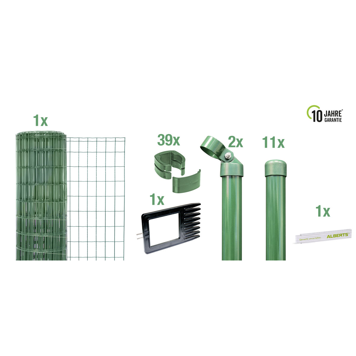 | Lieferumfang: | 1x Schweißgitter Fix-Clip Pro - 11x Zaunpfosten - 2x Streben - 39x Fix-Clip Pro - 1x Spannkamm zur Straffung von Schweißgittern |