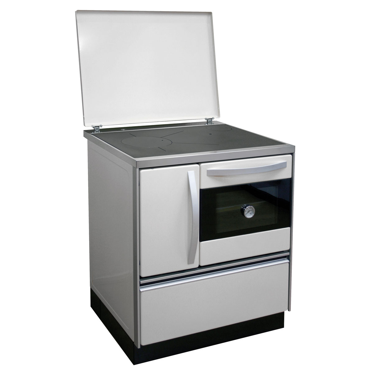 Mit dem FIREFIX Küchenherd ISAR 72 können Sie heizen, kochen und backen. Er verfügt außerdem über eine Herdplattenabdeckung. Der mit Scheitholz zu befeuernde Herd verfügt über ein breites, ausziehbares Holzfach, Kochplatte und einen verdeckten, herausnehmbaren Aschkasten. Die Backtemperatur können Sie am Thermometer direkt am Backfach ablesen. Die Verkleidung besteht aus emailierten Stahl in der Farbe weiß und ist robust gefertigt.