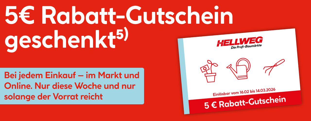 Jetzt den HELLWEG Newsletter abonnieren und exklusive Aktionen, Produktneuheiten und mehr erhalten! Wir optimieren die Inhalte basierend auf Ihrem Nutzungsverhalten. Ihre Einwilligung können Sie jederzeit widerrufen – über den Abmeldelink im Newsletter oder in Ihrem Kundenkonto. Details finden Sie in den Datenschutzbestimmungen.