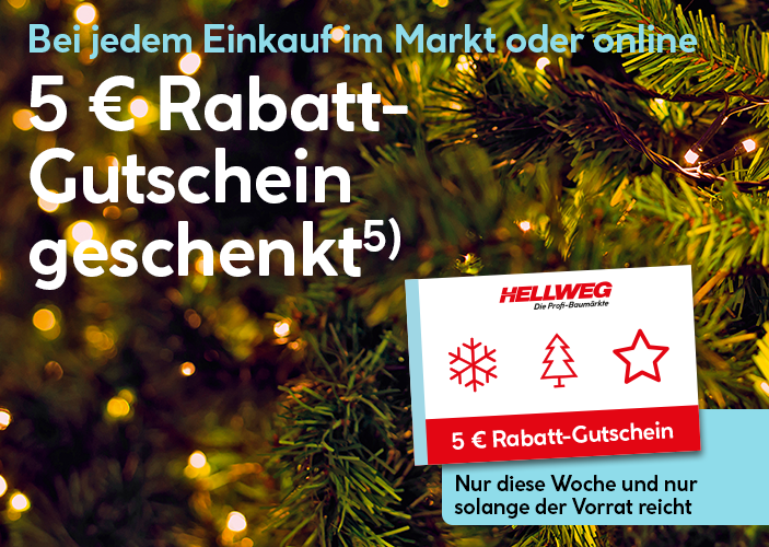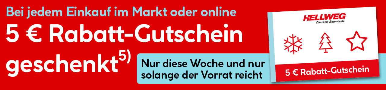 Nur diese Woche erhalten Sie bei jedem Einkauf einen 5 € Rabatt-Gutschein für Ihren nächsten Einkauf GRATIS dazu.
