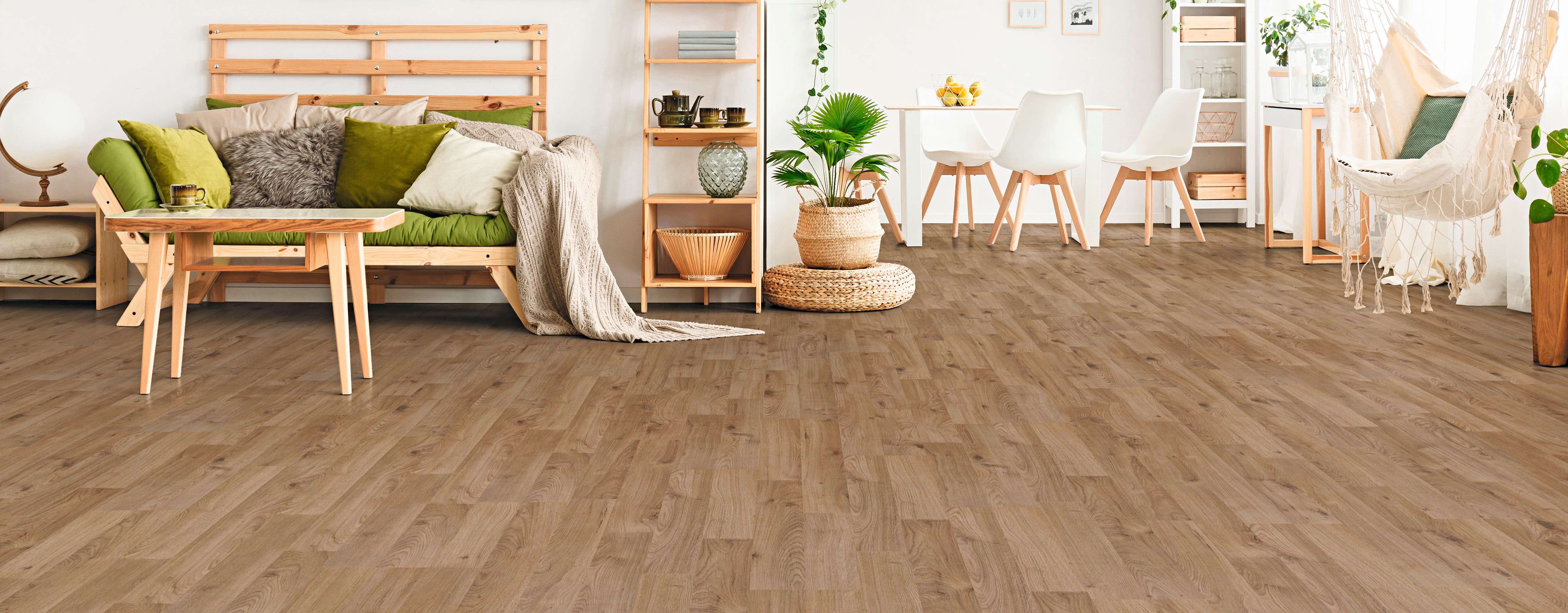 Tipp: Damit sich das Laminat nicht verzieht, sollten die Dielen mindestens zwei Tage vor dem Verlegen im entsprechenden Raum lagern – so gewöhnen sie sich an Temperatur und Luftfeuchtigkeit.